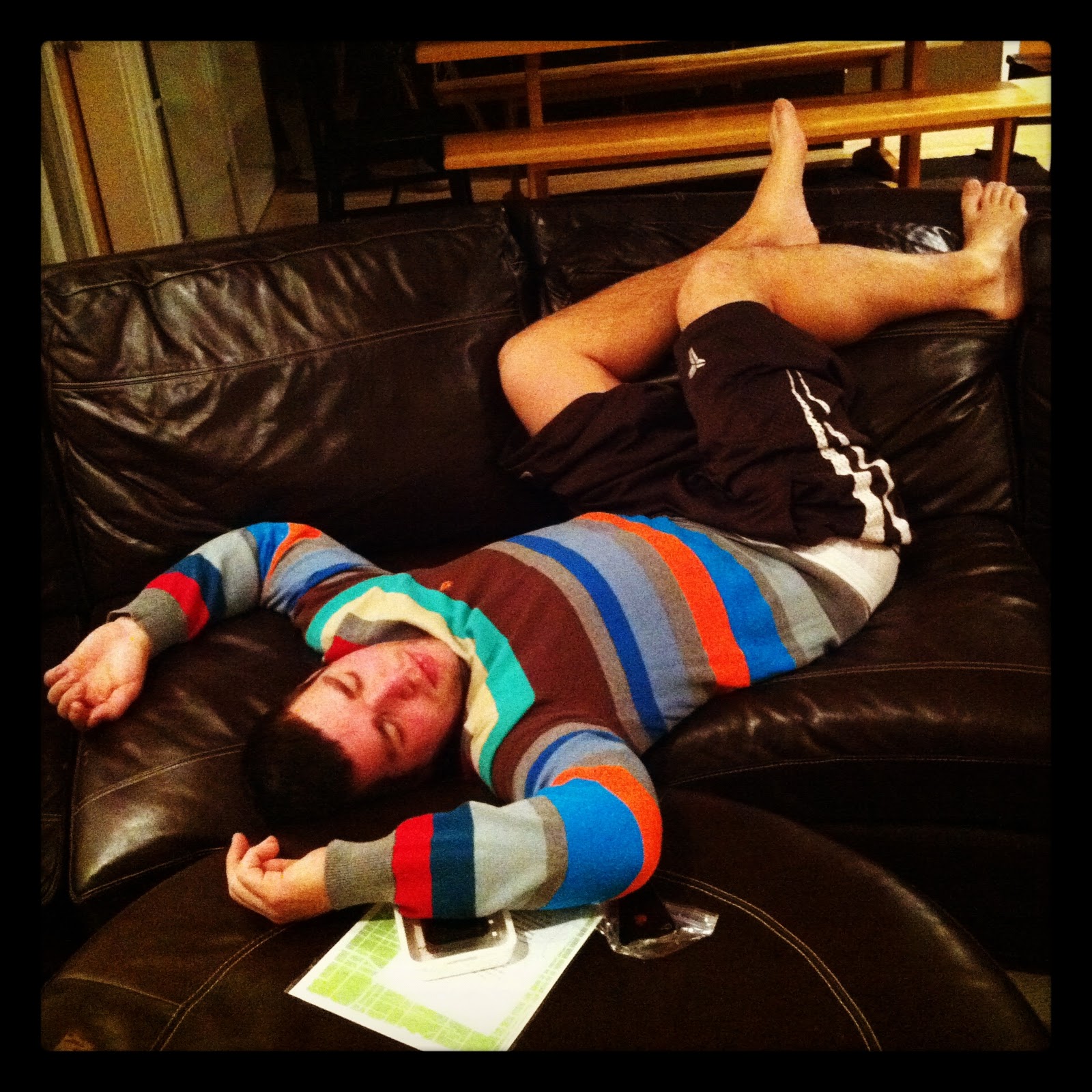 Christmas Eve night after Torch light parade- he is obviously pooped